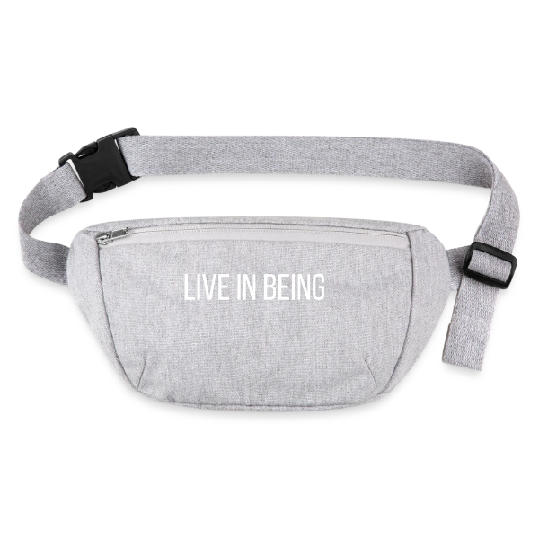 Elevate your on-the-go experience with our 'Live in Being' heather grey hip bag. More than just a bag, it's a companion for mindful travels, keeping your essentials close and nudging you to carry presence wherever you wander.