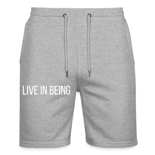 Embrace a blend of comfort and mindfulness with our 'Live in Being' heather grey jogger shorts. These unisex shorts are more than just loungewear; they're an ode to the ease of movement and presence in each step.